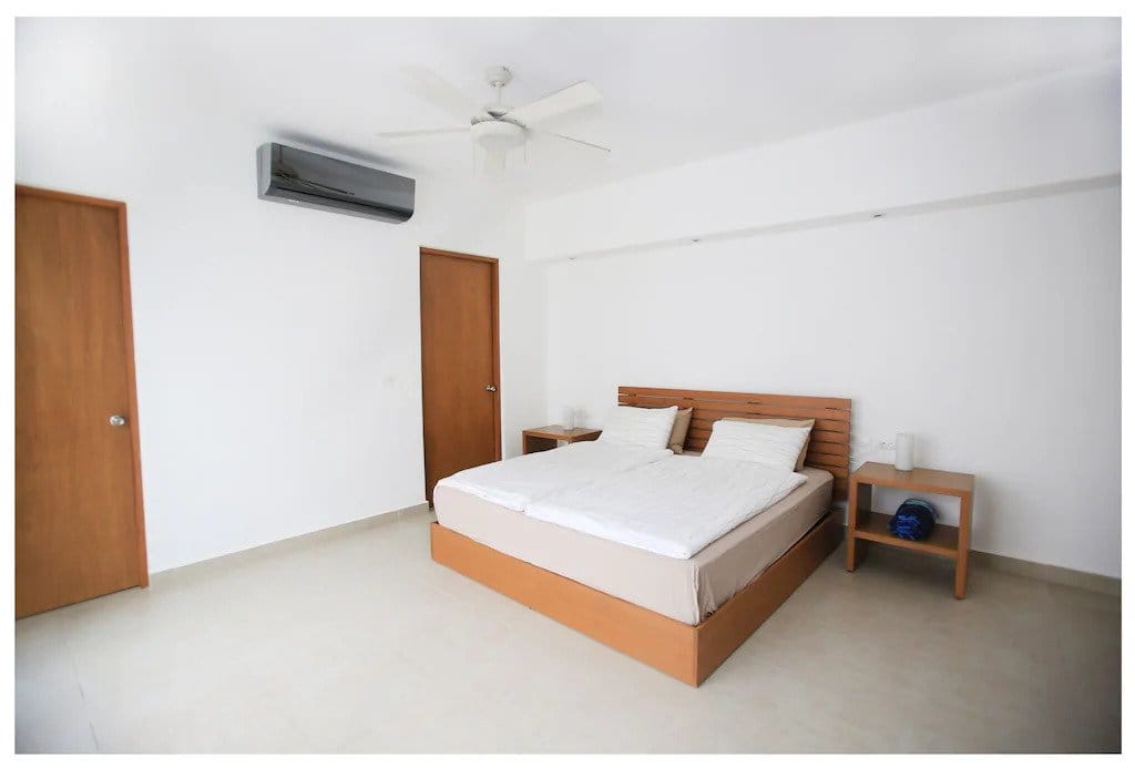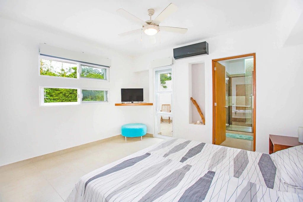 A modern studio with minimalistic decor is a great base for a vacation in Cozumel if you don’t want to splurge but still stay comfortable.