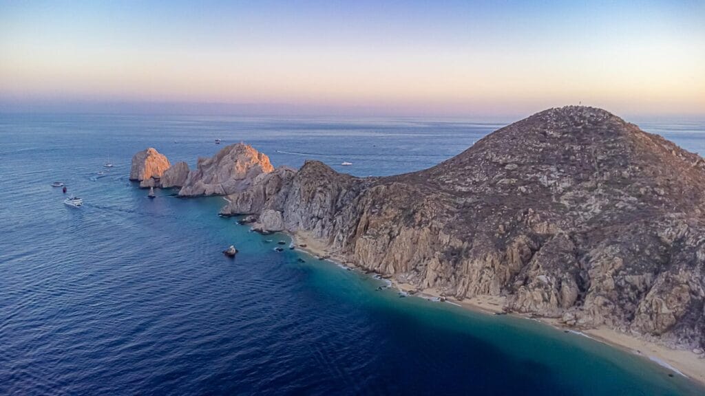 Cabo is located on the southern tip of Baja California Sur, on the Pacific coast where the Pacific Ocean meets the Sea of Cortez, with a spectacular red rock mountain range as a backdrop.