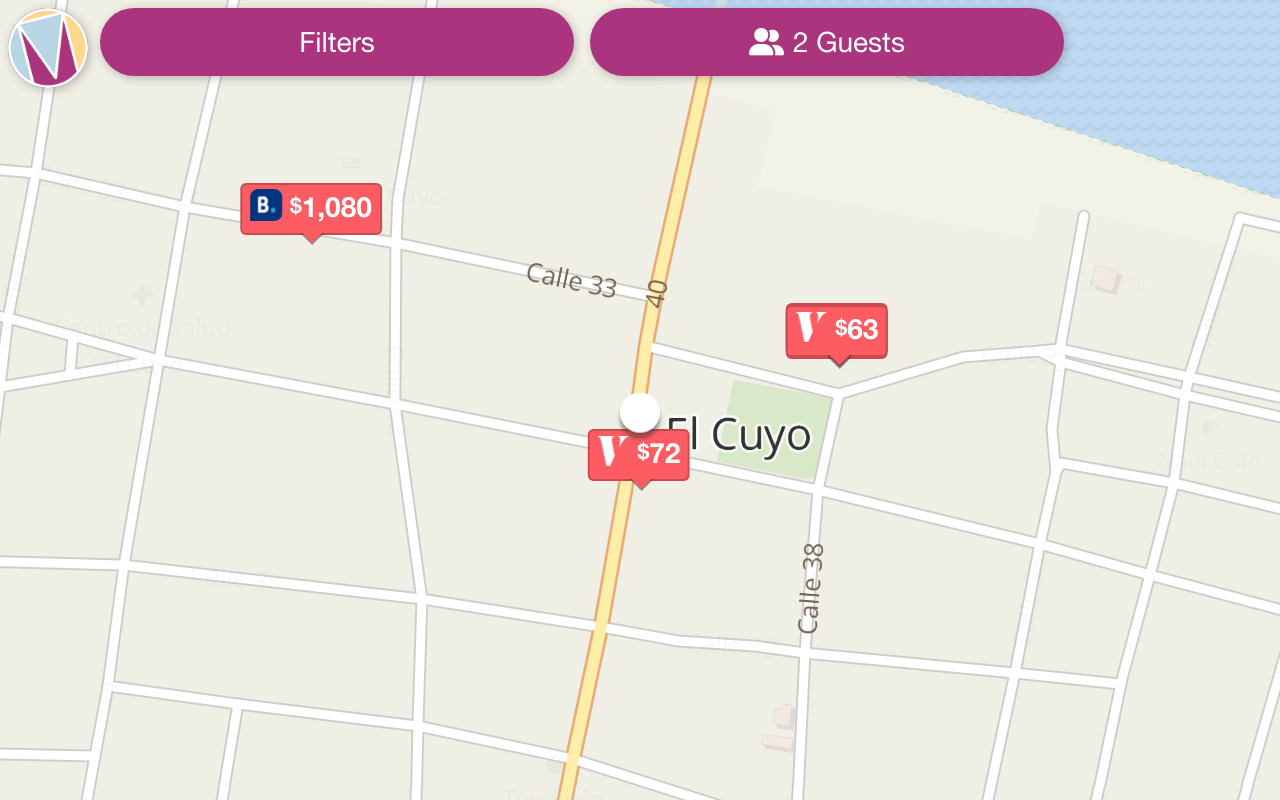 Find more accommodation options at El Cuyo on this useful, pretty map
