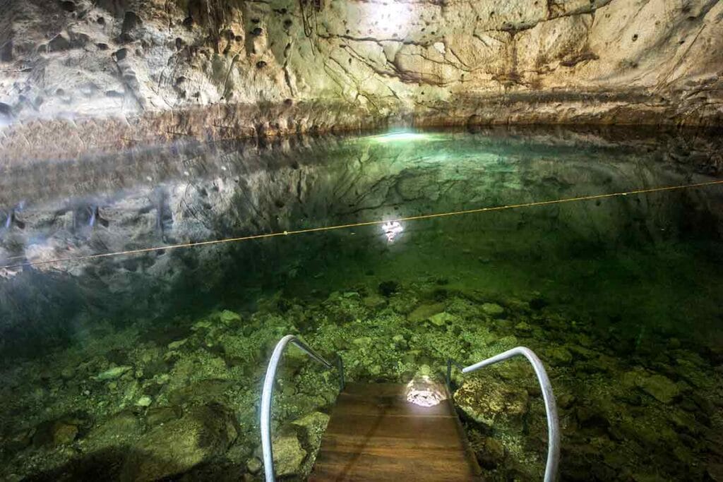 It means “hidden cenote” in the Mayan language – it’s about 7 mt deep and you can find beautiful giant stalactites and stalagmites formations beside rock paintings.