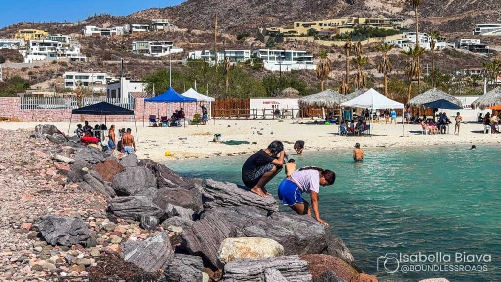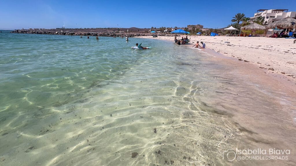While Playa El Caimancito is a favorite, it’s just one of many incredible beaches in La Paz, Playa Corumel is even closer to the city and also a great beach option, with lots of restaurants, toilets and showers, besides shade.